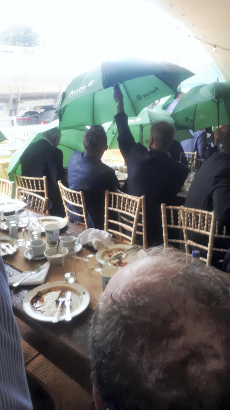 A rain shower and a westerly wind at the wrong time made grazing conditions difficult for the industry representatives, but the Aurivo umbrellas saved the day.
