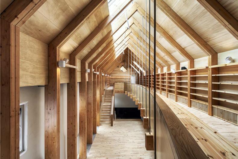 In transforming the building, wood was used extensively including cross-laminated timber (CLT) floor panels, glulaminated timber beams and rafters.