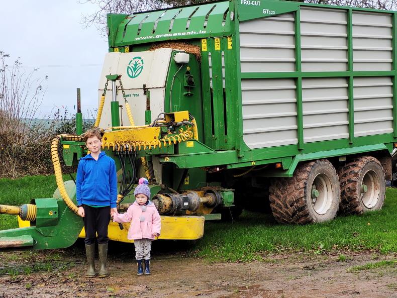 Cathal Geary and his sister, Anna, go to school in Feenagh national school in Limerick. His zero grazer is a trailer with a mower in front of it. They hitch it on to the back of the tractor and go to the field.