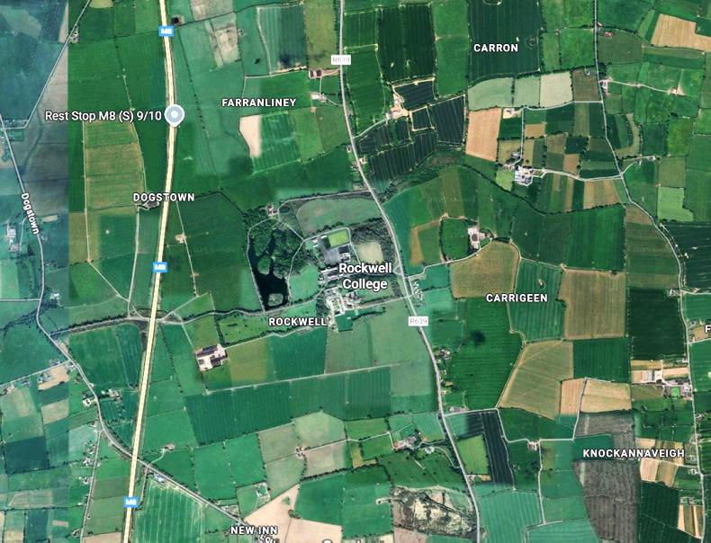 A satellite view of Rockwell College and Farm. \ Google Maps