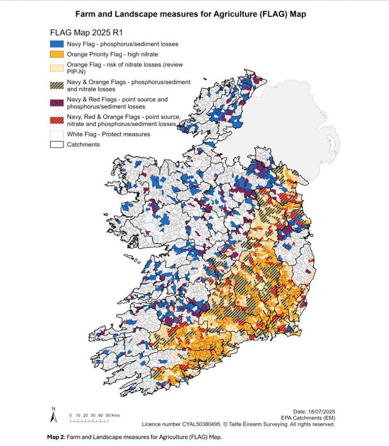 The farm and landscape measures for agriculture (FLAG) map compiled by the EPA includes twice-yearly updates of the early insight indicator for nitrogen online mapping tool.
