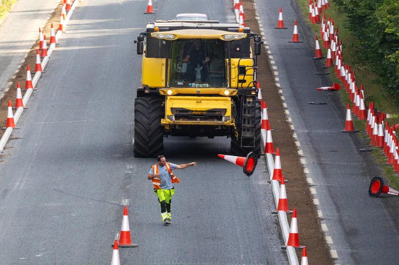 Farmers and contractors in south Kildare have had to divert from using a stretch of the R448 between Moone and Timolin this harvest as a result of a reduction in the width of the road because of a pilot cycleway project.