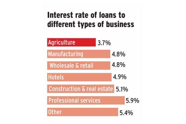 Farmers and farming enterprises borrow money at lower rates than any other business in the small and medium enterprise (SME) sector, a new study on bank lending has found.