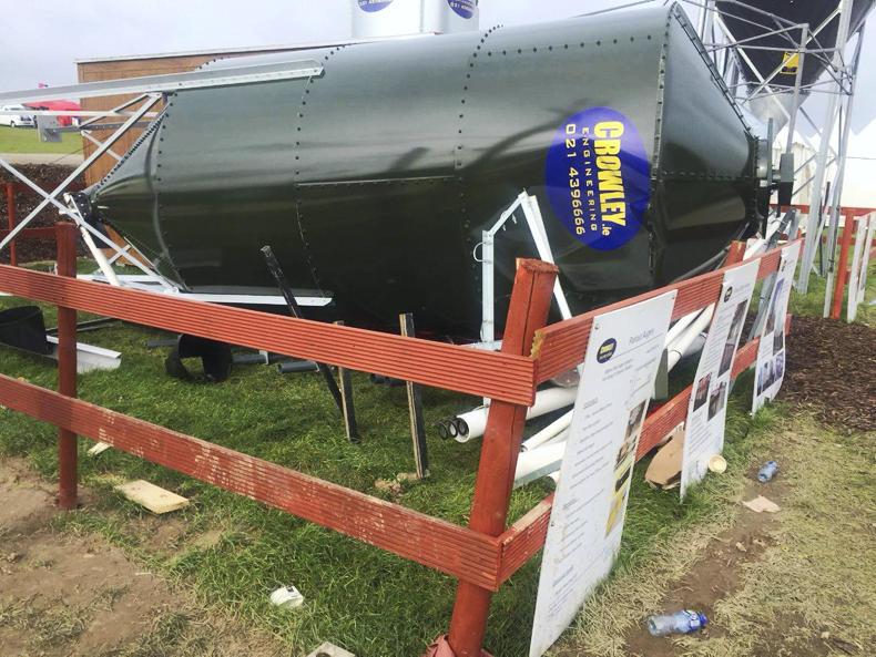An overturned silo on the Ploughing site in 2018.