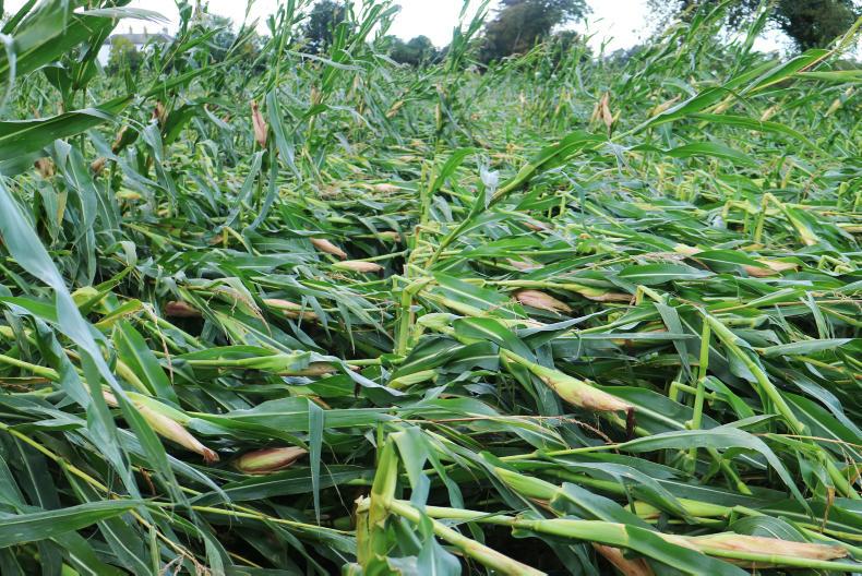 Maize which was damaged by high winds during Storm Ali in 2018.