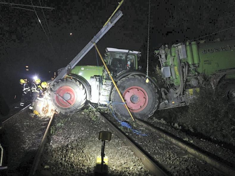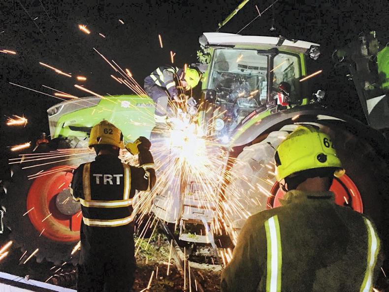 The accident occurred around 9pm on Wednesday 15 August, and it took the fire service almost nine hours of working through the night to untangle the tractor from the gantry and overhead wires.