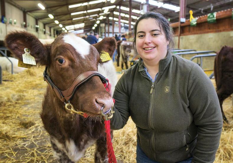 Eilish Gill from Crossmolina, Co Mayo, brings Neifinn Heathermaidwini from the ring. Owned by Kevin Murphy from Ballina, Co Mayo, the Shorthorn heifer sold for €2,300 at Carrick-on-Shannon Showgrounds. \ Gerry Faughnan