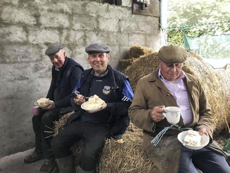 Outdoor dining for the silage contractors: William Whelan, Bobby Clancy and Paul Duggan take a break from baling in Portlaw, Co Waterford. \ Clodagh Duggan