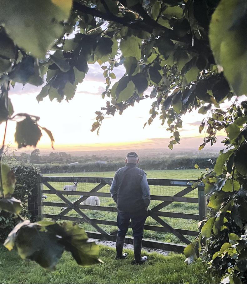 James Walsh checking on the sheep on an autumnal evening in Cullohill, Co Laois. \ Lisa Walsh