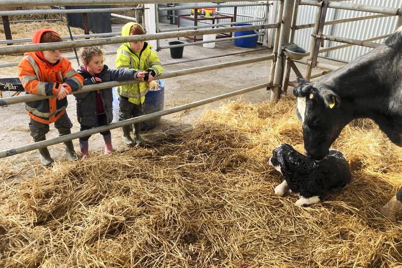 Tadhg, Fiadh and Paidí checking on their first calf of 2026 in Ballyheigue, Co Kerry. \ Deirdre Lawlor