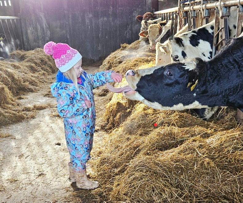 Katie making sure each cow gets its ration in Woodford, Co Galway. \ Louise Knibb
