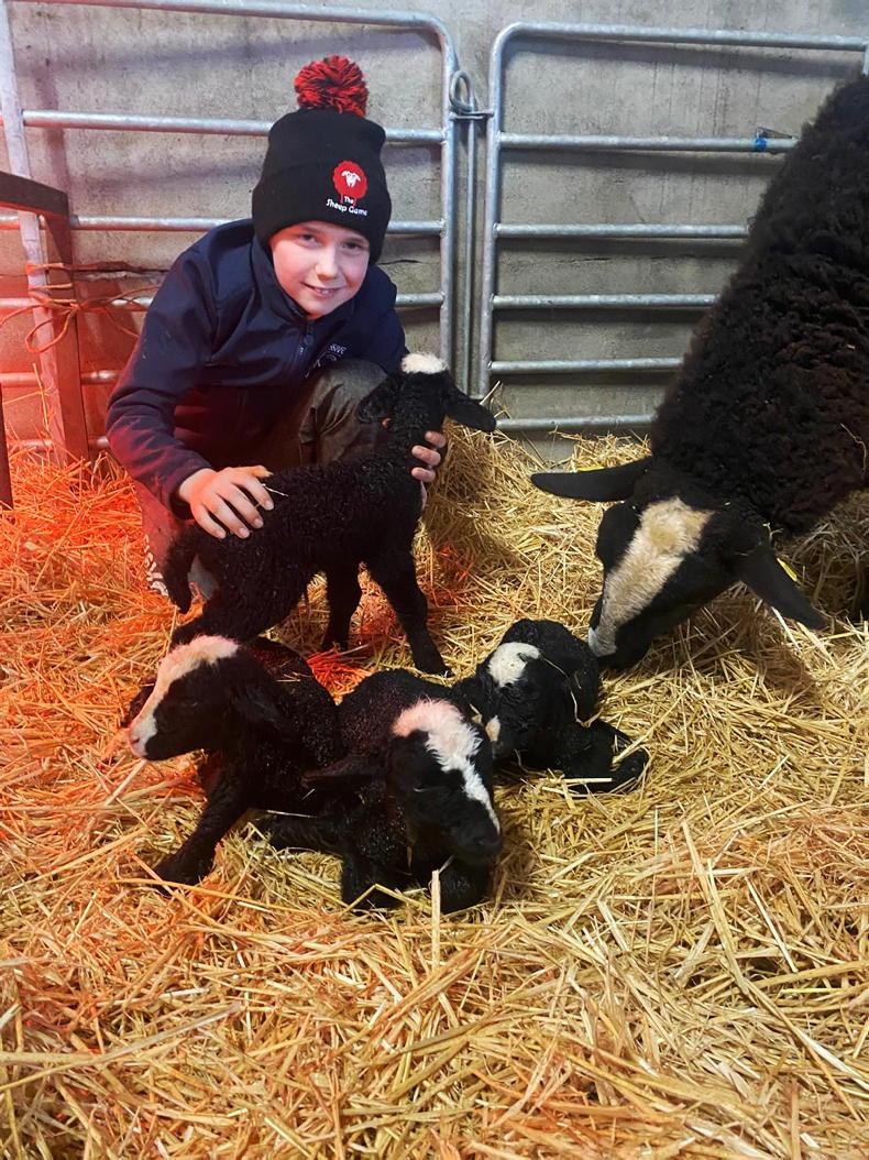 Nine-year-old Jack Hynes from Roscommon purchased three in-lamb pure bred Zwartbles in September and he had a fantastic return of eight healthy lambs from the three ewes. One ewe surprised everyone with four lambs. \ Maria Hynes