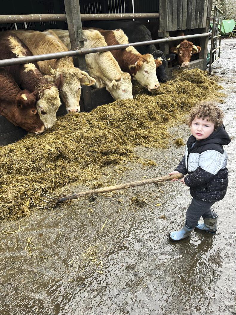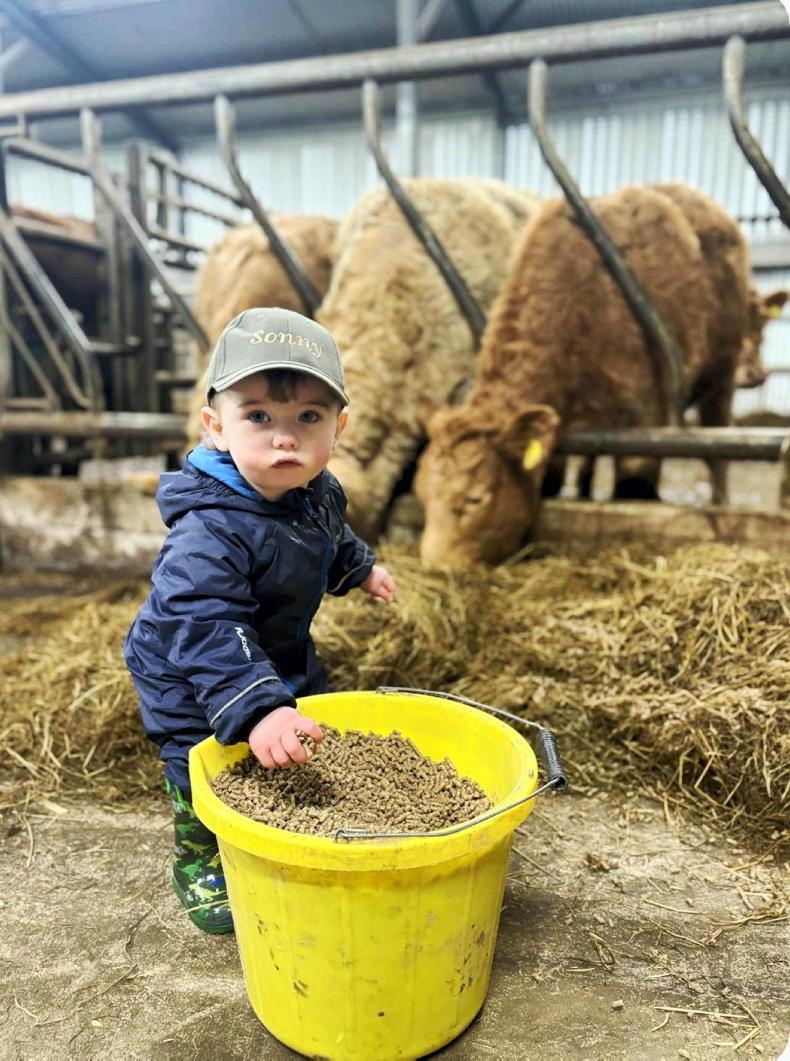 Sonny Corcoran feeding breakfast to the calves on uncle Conor Conway's farm in Co Galway. \ Anne Corcoran