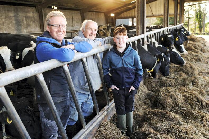 Michael Ring with his father Liam and nephew Liam Harnett after feeding the cows on the home farm at Farran, Emly, Co Tipperary. \ Donal O'Leary