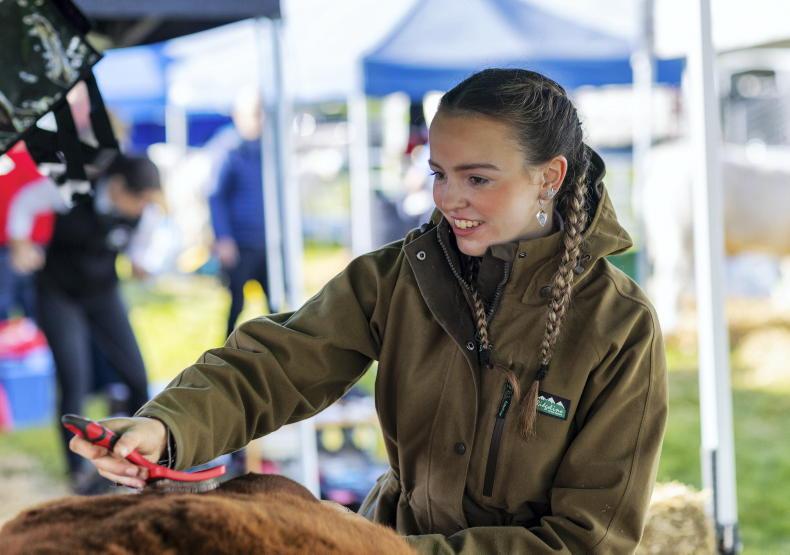 Young farmer brushes her animal ahead of judging at Ballinrobe Show. \ Claire Nash