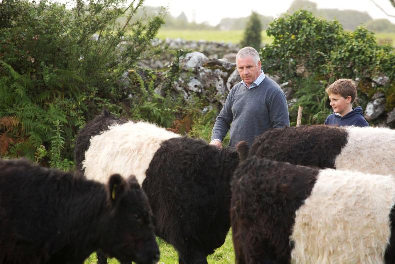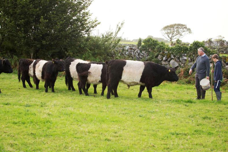The herd: “I keep 10 pedigree Belted Galloway cows, since I switched from Charolais. I wanted an animal that could look after itself. I bought cows from the Ballylough herd in Co Antrim, Co Kerry and Cumbria in England. My stock bull is a former junior champion at the Royal Highland Show.”