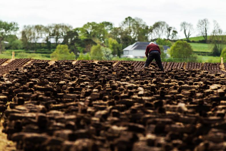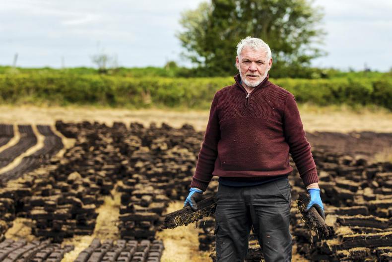 Frank Shine has begun drying eight rows of turf which he purchased from a local contactor in Ballyduff, Co Offaly. He is stacking sods of turf into footens. \ Philip Doyle