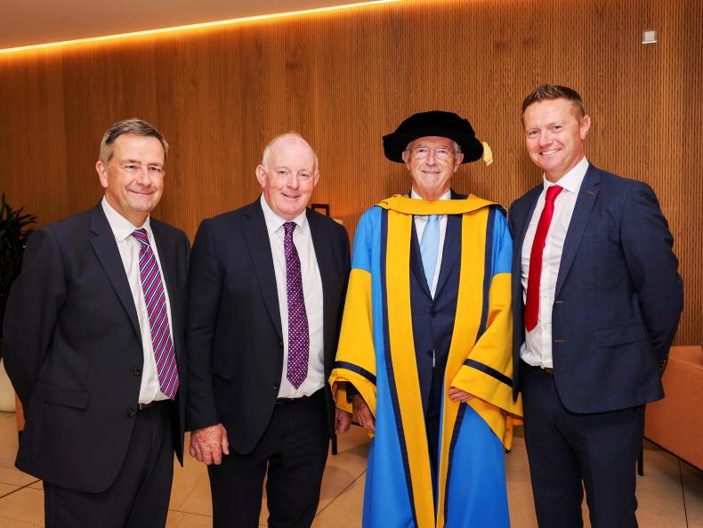 IFA director general Damian McDonald; IFA president Francie Gorman; Michael Berkery; and CEO of the Agricultural Trust William Minchin at the UCD conferring ceremony.