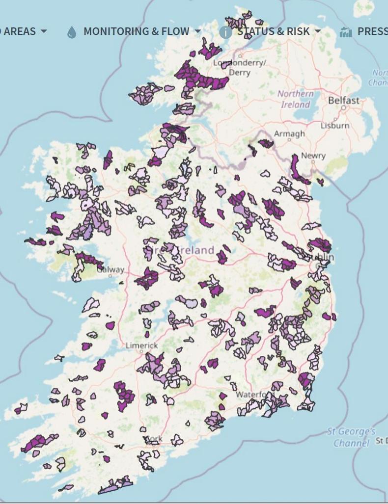 Figure 1: High status objective catchments where householders with Domestic waste water treatment issues can avail of grants for remediation works.