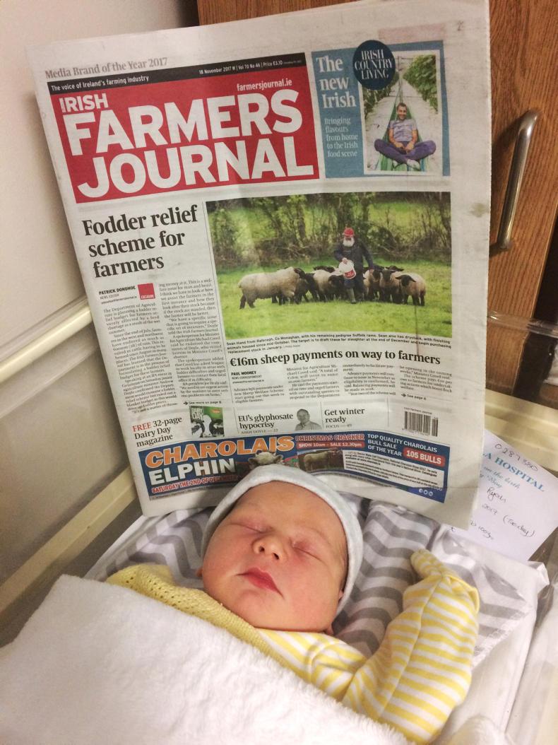 READERS PIC: Fionn Ryan enjoying his first read of the Irish Farmers Journal. Fionn was born on 14 November to his proud parents, Michelle and Kevin Ryan of Ballymahon, Co Longford.
