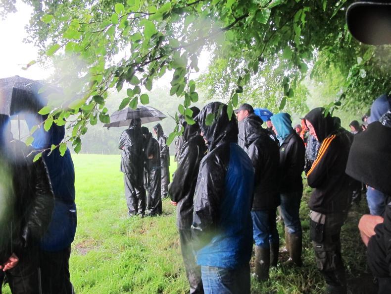 The farm walk continued despite heavy rain.