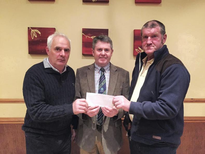 Presentation to George Graham (centre) representing Embrace Farm, with Sean Condren, chair of north wexford milk producers, and Donal Kennedy.