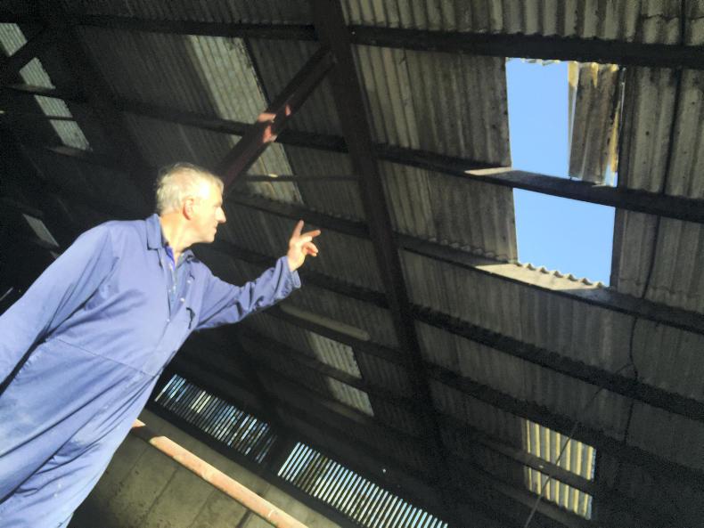 Down the road in Kilmacthomas, part of the roof on dairy farmer John Kiersey’s shed is gone too. Storm Darwin had blown off the other end three years ago.