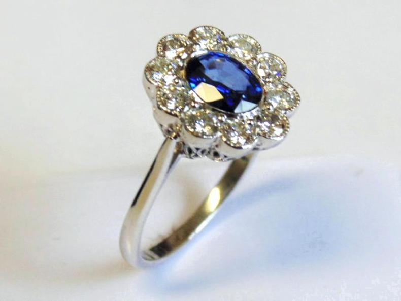 Lot 88 is an 18 carat white gold diamond and sapphire ring with a valuation of certificate of €3,200 and an estimate of €1,600 to €2,000. It did not sell.