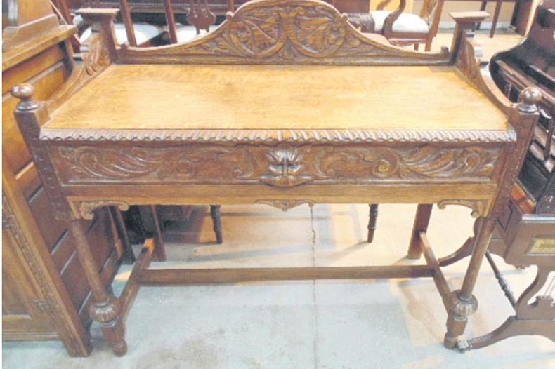 13. Lot 433 is a handy sized carved oak Victorian hall table with a single drawer. In another example of value in brown furniture it had an estimate of €200 – 250 and made €150.