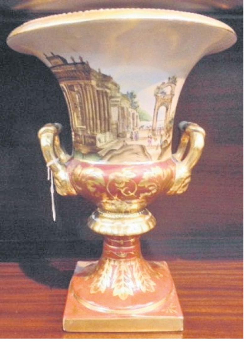 1. Lot 393, the 40cm high Dresden porcelain urn failed to make its estimate and sold for €170.