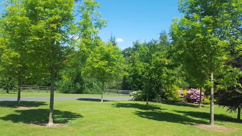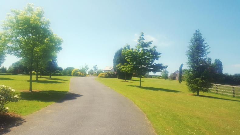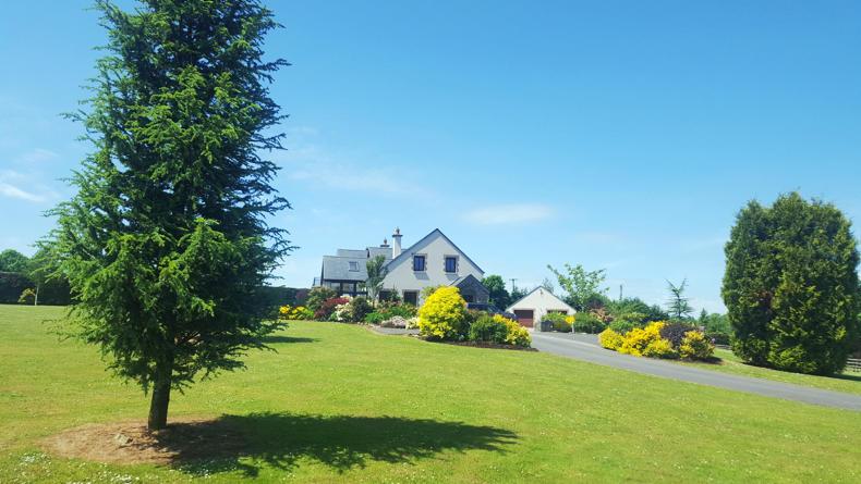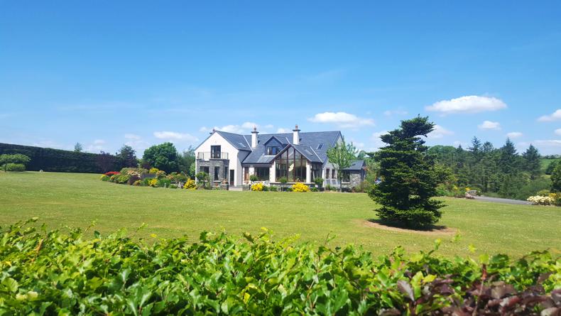 Accessed through Liscannor stone pillars and automatic gates, the property is approached from a winding tarred driveway lined with trees and shrubs on either side.