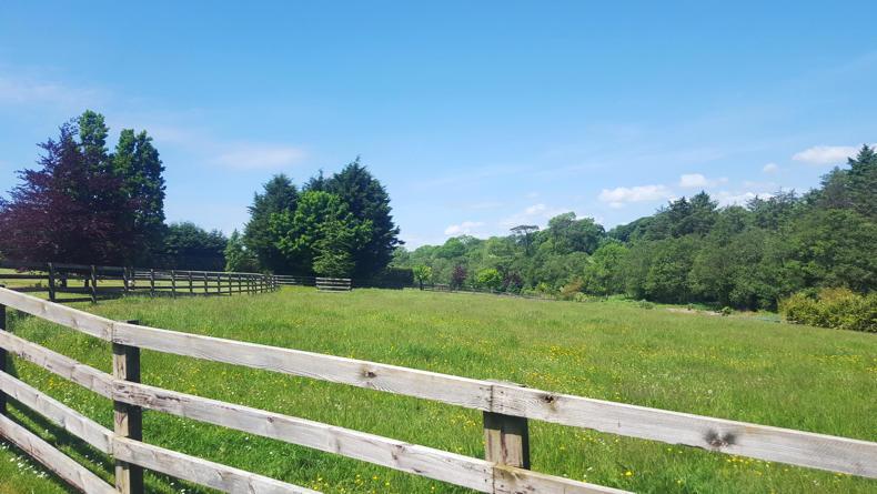 The 16.5 acres of land is divided up into a number of post and rail paddocks that are bounded by a natural stream.