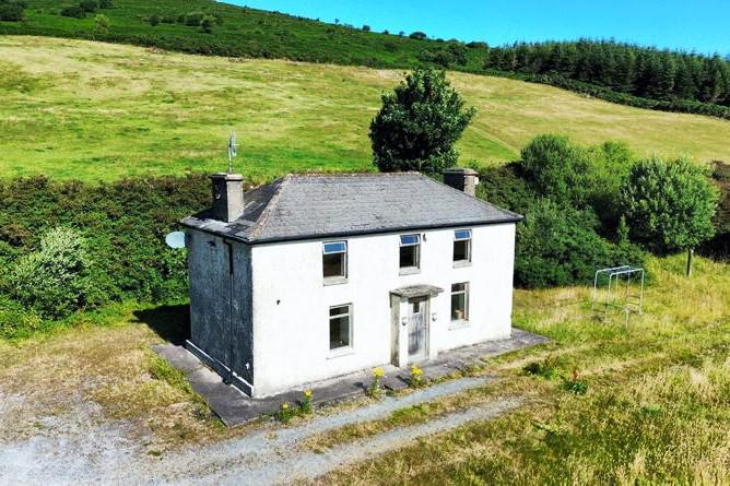Set back over 170m from the road, the house with two bedrooms is accessed via a sweeping driveway. It has oil-fired central heating and a well water supply. On the ground floor there is an open kitchen and living room area, while the bedrooms and a bathroom are upstairs. An added bonus for this property is that there has been full planning permission granted for a 1,700 sq ft extension.