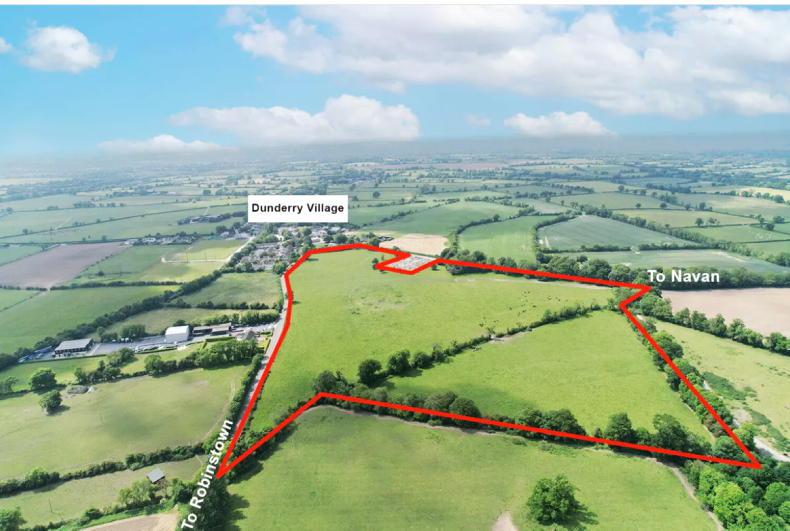 The farm is close to Dunderry village and 4km from the M3 motorway at Navan. The land is in two divisions and has dual road frontage giving it over 300m frontage overall on to the Dunderry to Navan road and 500m on to the Robinstown road.