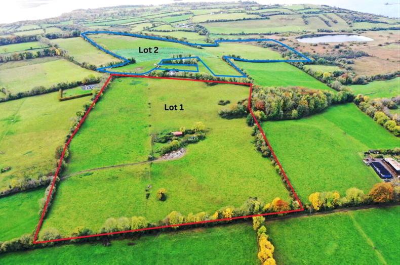 Lot 2 is 45ac adjoining Lot 1. This ground is described as being mainly top-quality grassland and the guide price is €450,000.