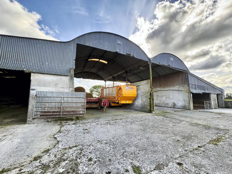 In addition, there is a four-bay slatted shed with a centre feed passage. There is a wide, four-bay round roofed shed, suited for storing hay and straw.