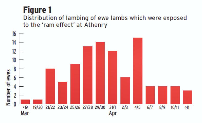 Last year at Athenry the ‘ram effect’ was used on the ewe lamb flock. The effect on lambing spread is presented in Figure 1.