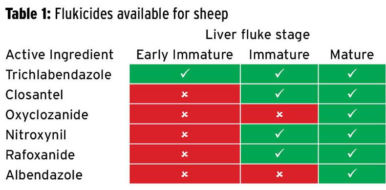 Table 1 details flukicides on the market and the stage of live fluke each treats.