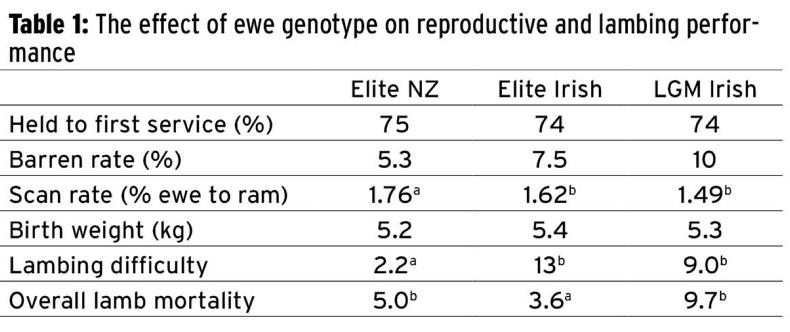“They have outperformed both groups of Irish ewes in terms of a lower barren rate and greater lambing ease. The elite Irish ewes recorded greater lambing difficulty, but once lambs were born they were very vigorous and up quick to suckle. This contributed to the low mortality rate of 3.6%.”