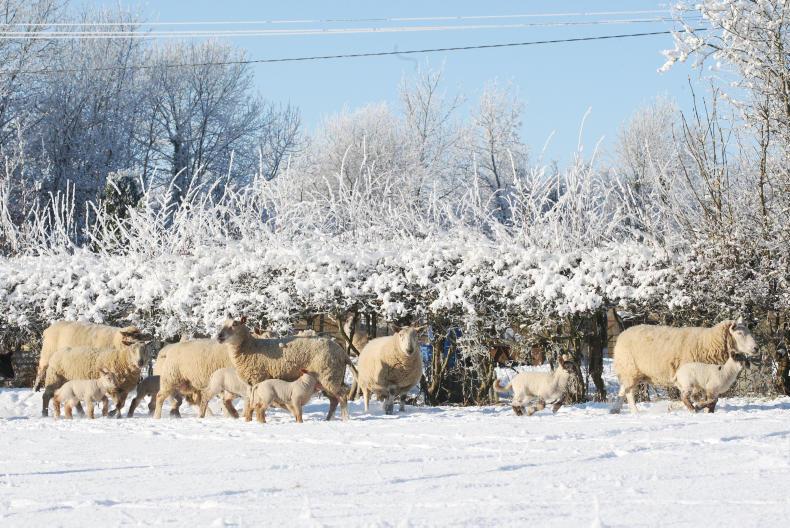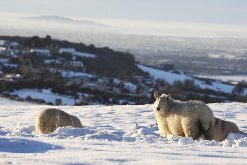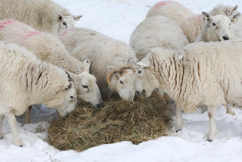 This is particularly the case for ewes with young lambs at foot, with nutrition and shelter two vital considerations. Increasing supplementation levels by 5% to 10% over the current offering will help to boost energy intake. Where spring grass has fulfilled the energy requirement of lactating ewes up to now, the need to supplement and the level required will depend on the volume of snowfall present and the length it lasts on the ground. At a minimum, lactating ewes with no access to grass should be supplemented with concentrates while taking care to target feeding levels so that acidosis is not a risk. Remember lactating ewes require up to 10l of water per day.