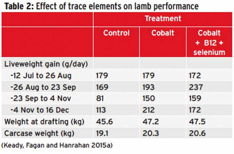 A study was undertaken recently at the Athenry Research Centre to evaluate the effects on lamb performance post-weaning from supplementation with cobalt, either alone or in combination with vitamin B12 and selenium.