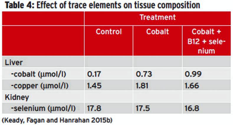 Currently there is no accurate measure for blood cobalt concentration available in Ireland. As cobalt is stored in the liver in the form of vitamin B12, the best indicator for cobalt status is liver cobalt concentration. The effects of treatment on liver and kidney composition are presented in Table 4.