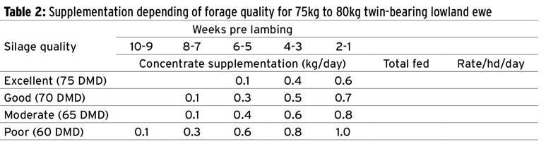 Others do not supplement single-bearing ewes in good condition and where this is the case this can be recorded in the table as zero supplementation.