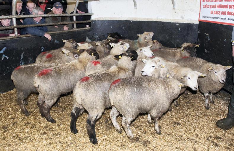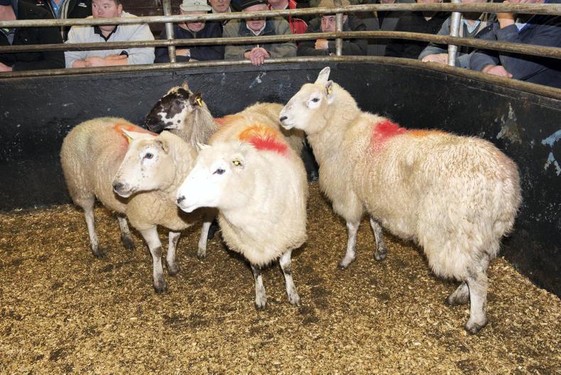 Demand is being helped by positive grass supplies, with single lamb lots selling from €140 to €180, while twin lamb units sold from €180 for aged ewes or light lambs to a top of €250 to €270 for good ewes and stronger lambs.