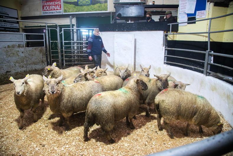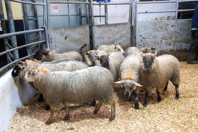 This batch of Cheviot cull feeding ewes weighing 64kg sold for €87 (€1.36/kg).