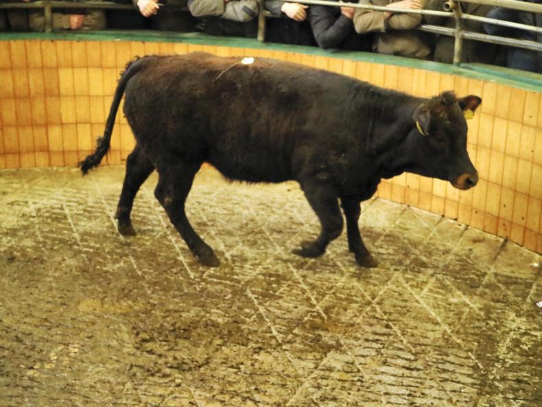 This Angus cross five-star heifer born April 2017 and weighing 265kg sold for €650 (€2.45/kg). This Angus cross five-star heifer born April 2017 and weighing 265kg sold for €650 (€2.45/kg).