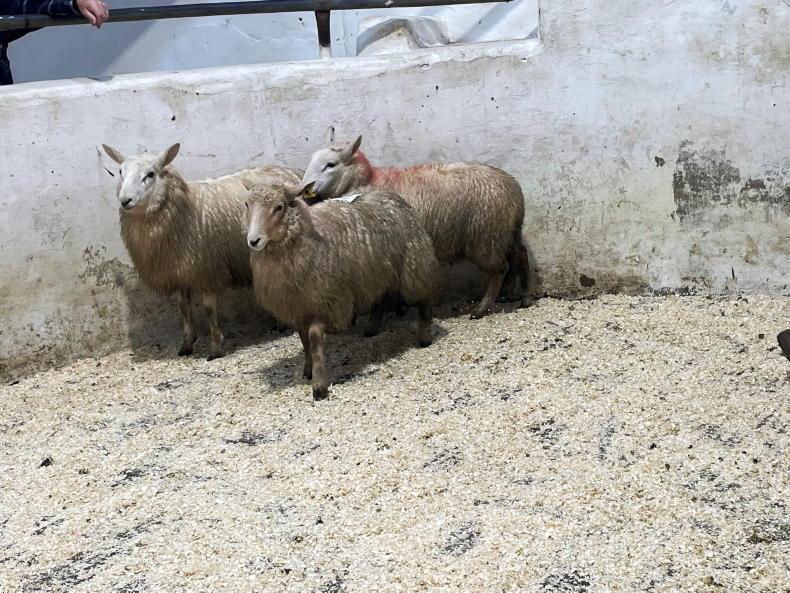 These three two-year-old ewes weighed 56kg and sold for €91/head.