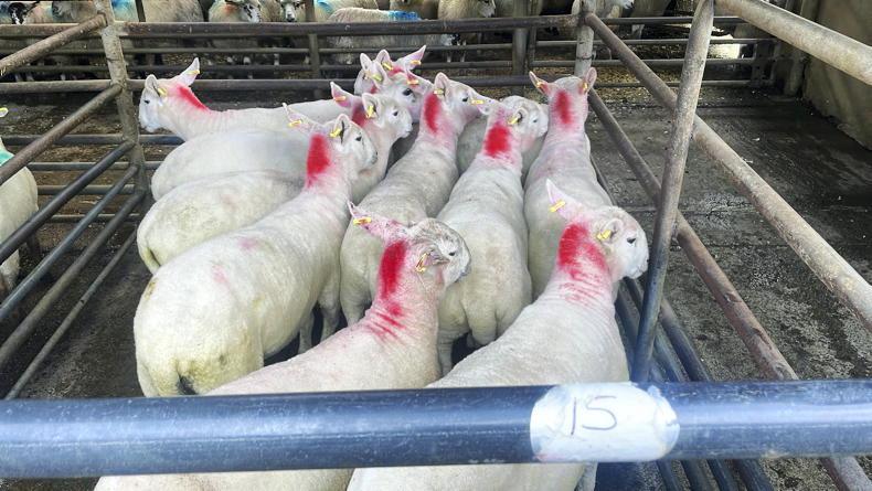 This batch of top-quality Cheviot ewe lambs weighing 42kg topped the lamb sale at €264 each (€6.29/kg).