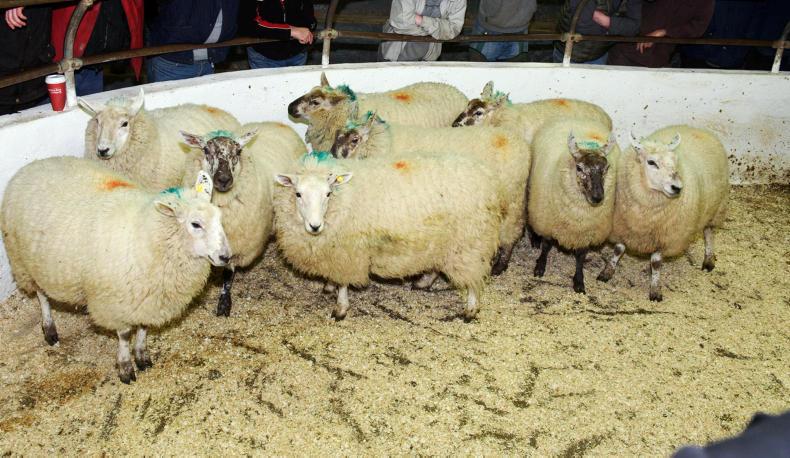 There was a good entry of ewes with lambs at foot on offer also. These sold mainly from €150/head for older ewes with single lambs at foot and up to €240/head for top-quality young ewes with doubles and from €90 to €178/head for ewes with singles at foot.