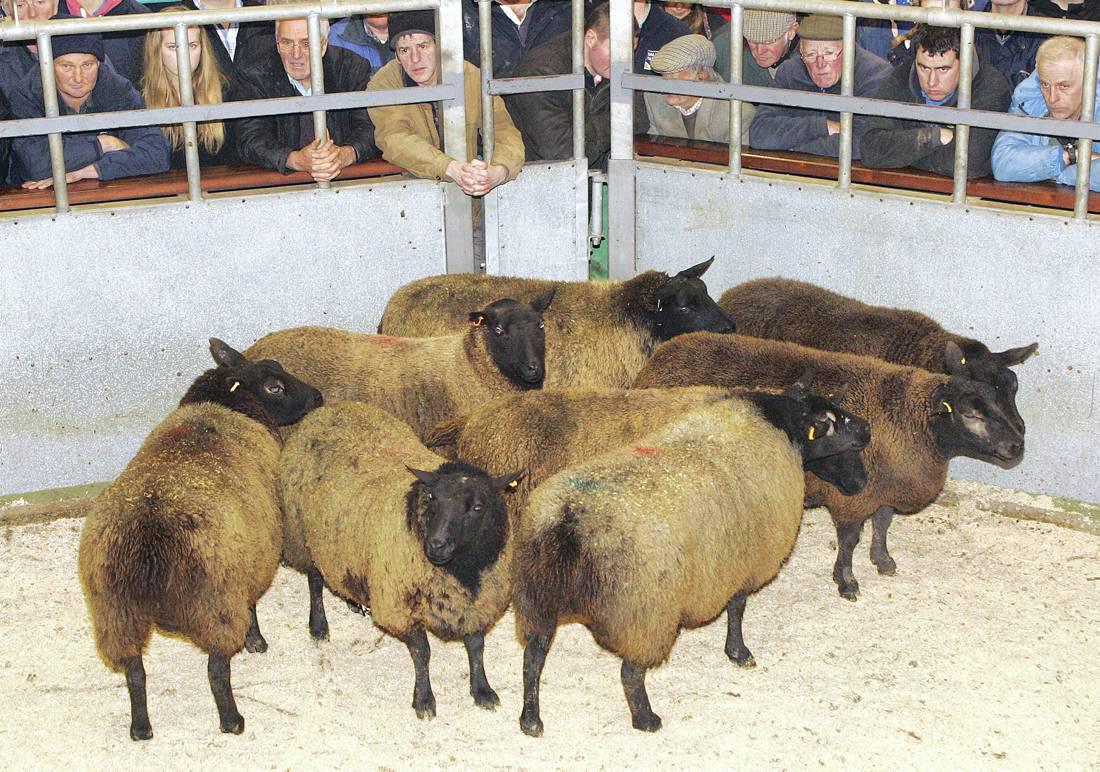 A packed ringside and top-quality ewes on offer led to a lively sale, with prices ranging from £160 (€202) to a top of £202 (€256) for a pen of good-quality Suffolk cross hoggets carrying twin lambs.